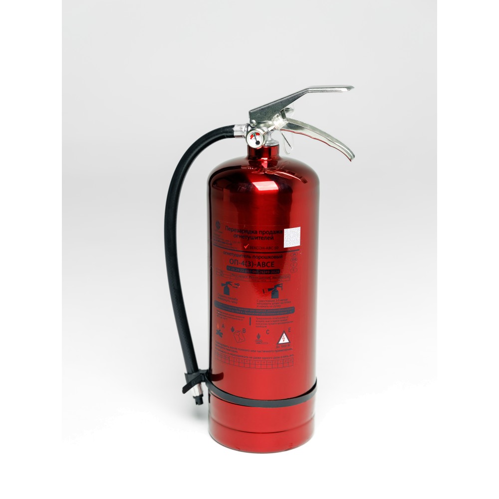 Масса заряда огнетушащего вещества - 4 кг. Ранг по модельным очагам: 2А, 55В, С, Е (до 1000В).